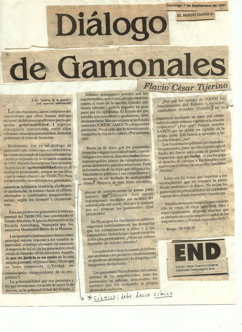 FCT “Diálogo de Gamonales" publicado en El Nuevo Diario el 7 de Septiembre de 1997