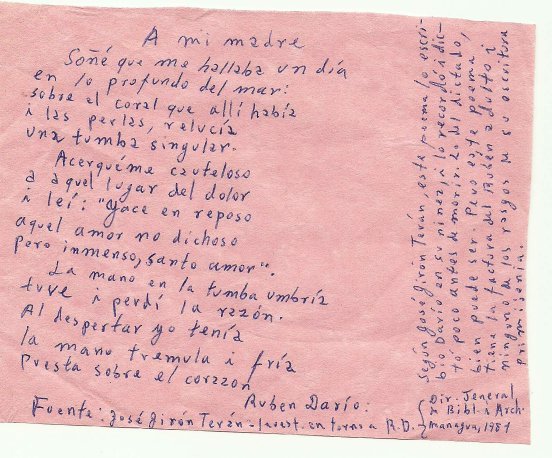 FCT comentario acerca poema A mi Madre de Ruben Dario