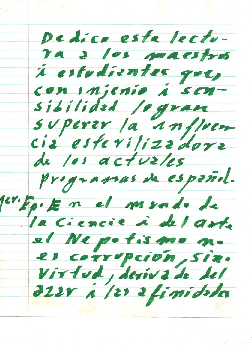 Lectura dedicada a los maestros y estudiantes (documento incompleto)