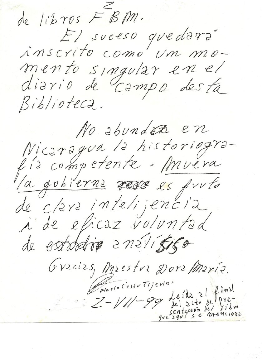 FCT palabras sobre la visita de Dora Maria Tellez a la BFBM -2 de Julio-1999 pg1”