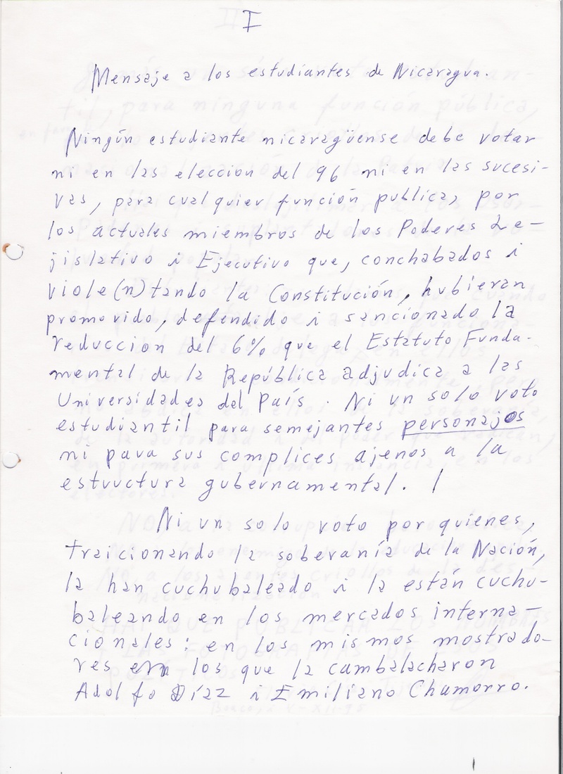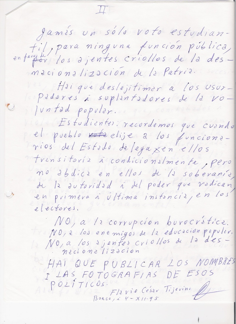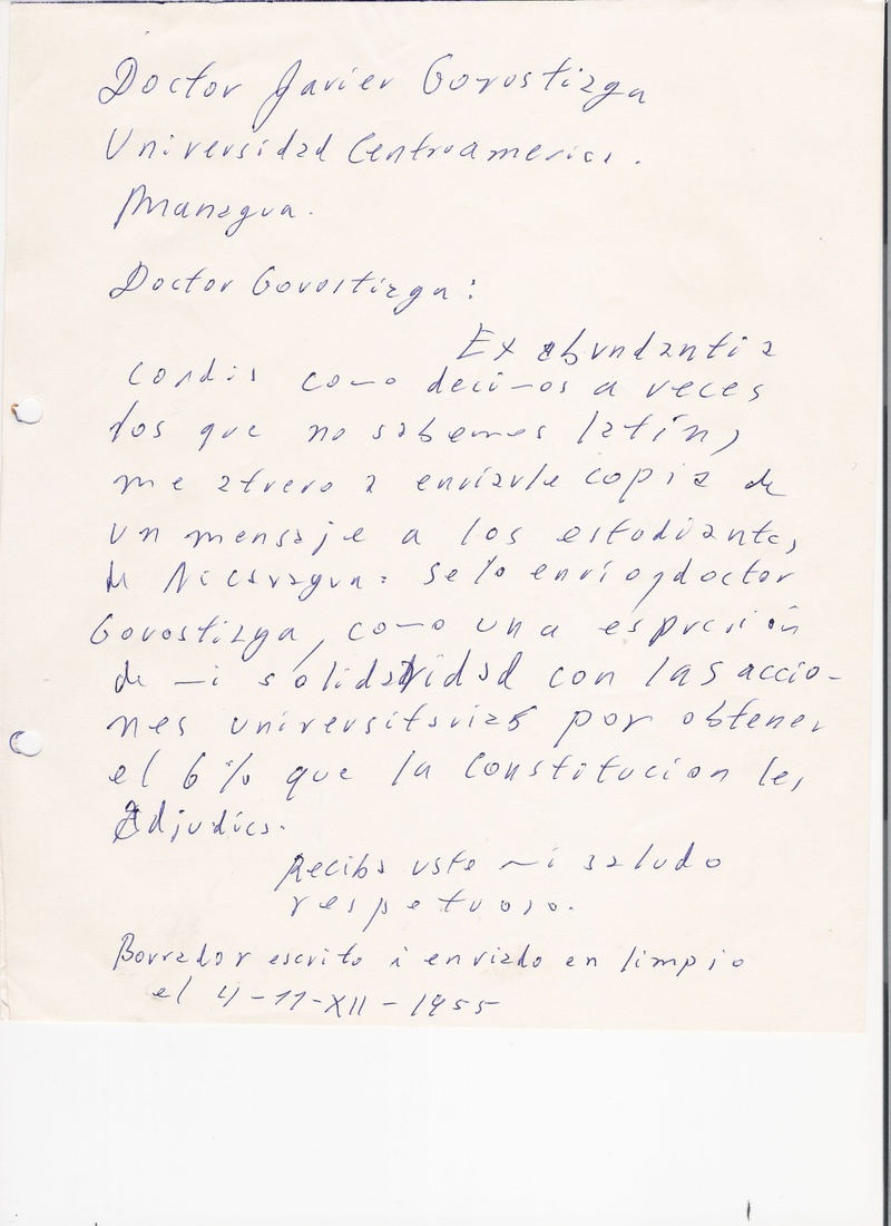 Carta de Flavio César Tijerino dirigida a los Estudiantes de Nicaragua - 1995 Carta a los estudiantes de Nicaragua p1 4 dec 1995. Carta a los estudiantes de Nicaragua p2 4 dec 1995. Carta al Doctor Javier Gorostiaga re carta a los estudiantes 1995. Carta al Doctor Danilo Aguirre re carta p.1 a los estudiantes 1995. Carta al Doctor Danilo Aguirre re carta p.2 a los estudiantes 1995. Regresar a CARTAS |